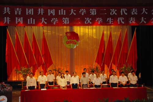 5月29日上午,共青团井冈山大学第二次代表大会、井冈山大学第二次学生代表大会圆满完成各项预定议程,胜利闭幕。会议通过了《关于共青团井冈山大学第一届委员会工作报告的决议》、《关于井冈山大学第一届学生委员会工作报告的决议》、《共青团井冈山大学第一届委员会团费收支报告的决议》,会议选举了郭新春等19名同志为共青团井冈山大学第二届委员会委员,选举张品恒等27名同学为井冈山大学第二届学生委员会委员。党委委员、组织部长龙学先出席,郭新春主持,习军明致闭幕词,叶磊同学宣读了《树立远大理想,书写美好人生,为建设特色鲜明的区域高水平大学发挥生力军作用》的倡议书。190名代表参加会议。