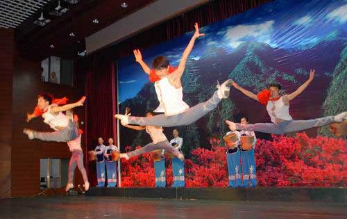 演出现场始终洋溢着热烈的气氛。大学生认真的表演,赢得了学员的阵阵掌声。演出结束时,有的学员还走上舞台,走到大学生演员中间,要求合影留念。