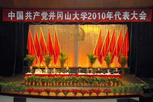 4月24日上午,中国共产党井冈山大学2010年代表大会隆重召开。校党委书记万继抗出席,校长、校党委副书记张泰城主持。校领导金桂英、桂国庆、郭名根、罗学渭,党委委员吕玉华、龙学先、肖长春出席,校领导曾建平列席会议。120名正式代表和10名列席代表参加会议。
