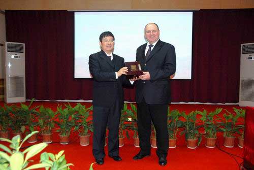 4月3日下午,俄罗斯人民友谊大学副校长捷尼辛科·弗拉基米尔·尼基弗洛维奇,在俄罗斯人民友谊大学尼古拉·康斯坦丁诺维奇·波诺马列夫教授以及俄罗斯人民友谊大学驻北京办事处人员等陪同下,来我校访问。校长张泰城对俄罗斯人民友谊大学代表团来访表示热烈欢迎。双方就合作意向进行了友好会谈,并互赠了纪念品。副校长罗学渭主持,副校长曾建平、党委委员吕玉华出席,有关部门负责人参加了会谈。