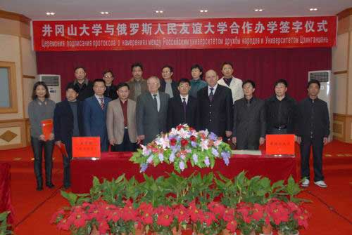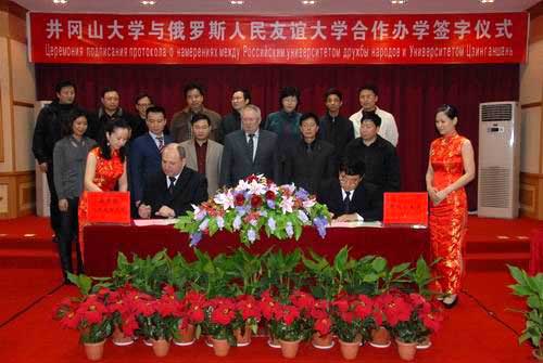 据悉,两校合作协议书的基本内容有:双方同意建立校际合作关系,两校缔结为友好学校。双方积极开展教师交流,俄罗斯人民友谊大学协助井冈山大学建立俄语教研组,双方为进行交流活动的教师提供培训,井冈山大学选派教师到俄罗斯人民友谊大学攻读硕士、博士学位,两校开展学术交流并共同举办学术会议。双方积极开展学生交流,俄罗斯人民友谊大学为井冈山大学的本科毕业生来校攻读硕士提供便利,双方互派学生到对方学校学习或交换,联合开展学生寒暑假短期交流,举办学生夏(冬)令营。