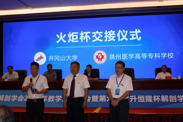 开幕式进行了象征会议精神和具有传承意义的火炬杯交接仪式。井冈山大学医学部将本届火炬杯归还给中国解剖学会教育与继续教育工作委员会,并由刘学政将火炬杯郑重交给2023年承办单位泉州医学高等专科学校。