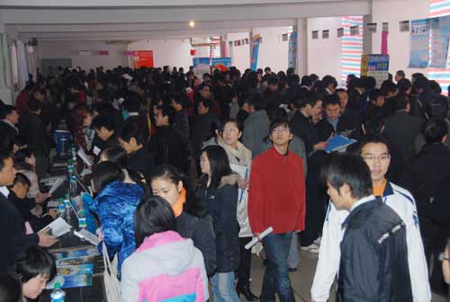 数理学院06级数学本(1)班尹志斌说,非常感谢学校邀请了这么多用人单位来校选拔应届毕业生,我今天投了不少简历,相信通过这次招聘会一定能找到自己满意的工作。