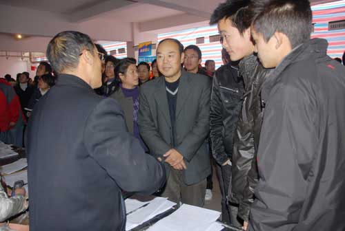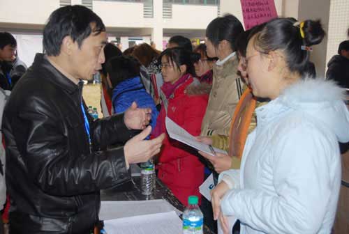 为大力推介我校2010届毕业生顺利就业,在学校领导、主管部门以及各学院的共同努力下,1月9日我校成功举办了应届毕业生供需见面会。来自全国各地,以及吉安市文教卫生系统、吉州工业园区等共400多家用人单位纷纷来校选拔招聘人才,我校及兄弟高校应届毕业生数千人踊跃前往应聘。在校的领导万继抗、金桂英、桂国庆、郭名根、罗学渭、王伴青、曾建平以及党委委员吕玉华、肖长春等,在招就处负责人崔雅丽等的陪同下,到现场看望应聘学生,并对各用人单位来校选拔人才表示感谢。