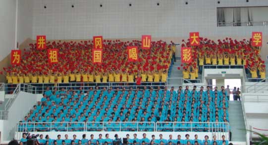 据悉,我校对组织大学生参加吉安各界庆祝中华人民共和国成立六十周年“红歌大家唱”大型演唱会高度重视,学校组成了组委会,艺术学院400名大学生进行了近一个月的紧张排练。(滕永琛朱仪)