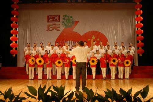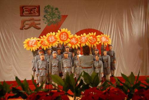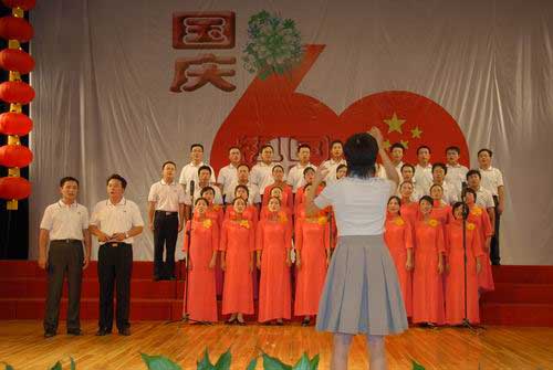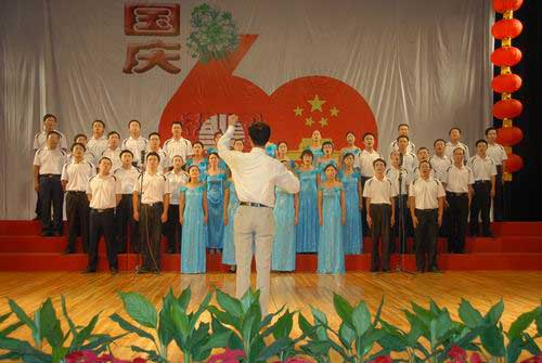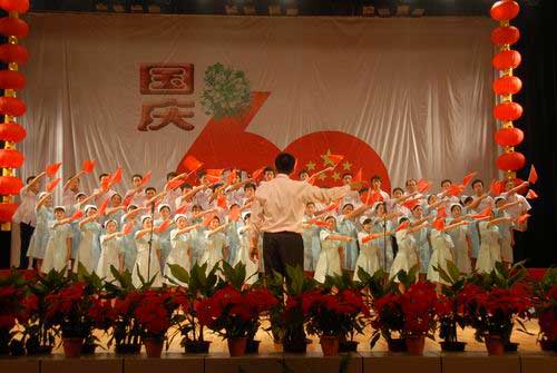 9月28日晚,我校隆重举行教职工专场“祖国万岁”歌咏晚会。全校19个基层党委各组成一支40名教职工参与的合唱队伍,以一首首经典红歌,以飞扬的神采,唱响风雷激荡,唱出豪情满怀,歌咏祖国60年来的伟大成就,表达对祖国美好明天的祝愿,同时也展示了全体教职工建设美好校园的壮志雄心。校领导万继抗、金桂英、桂国庆、罗学渭、曾建平,校党委委员吕玉华、龙学先、肖长春,与1500名师生一起,欣赏了精彩的节目。