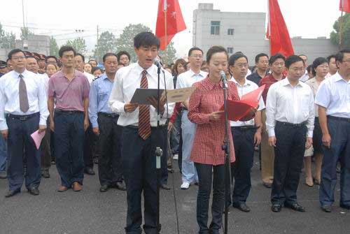 随后,两名大学生面对国旗,朗诵了国旗颂词,代表全校两万名师生,表达了在同一片蓝天下的同一份心愿,祝福伟大祖国更加繁荣昌盛,祝愿学校的各项事业更加蒸蒸日上。