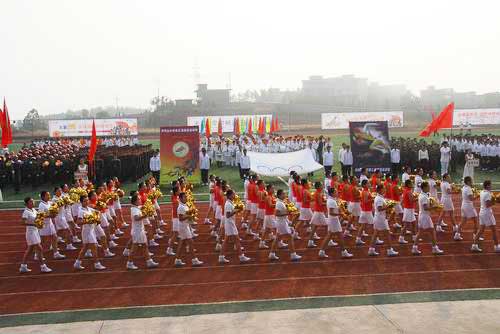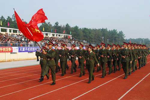 在入场仪式上,国防生学院的46名国防生,以及来自14个学院的运动员列成整齐的方阵,以崭新的精神风貌、高昂的斗志接受了校领导的检阅。