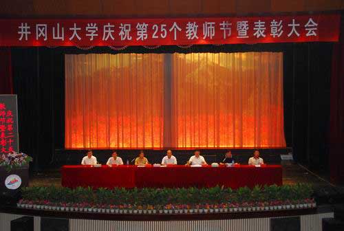 9月9日下午,学校隆重举行了庆祝第25个教师节暨表彰大会。党委书记万继抗出席,校长张泰城讲话。党委副书记金桂英宣读了学校关于表彰2008至2009学年度优秀教师的决定、2009年青年教师讲课比赛获奖名单,副校长桂国庆主持大会,副校长罗学渭、王伴青、曾建平出席。全体与会校领导为优秀教师、讲课比赛获奖者颁奖。学校各部门主要负责人,各学院党政负责人,25名受表彰的优秀教师、11名青年教师讲课比赛获奖教师,2009年新进教师,学生代表等参加了会议。