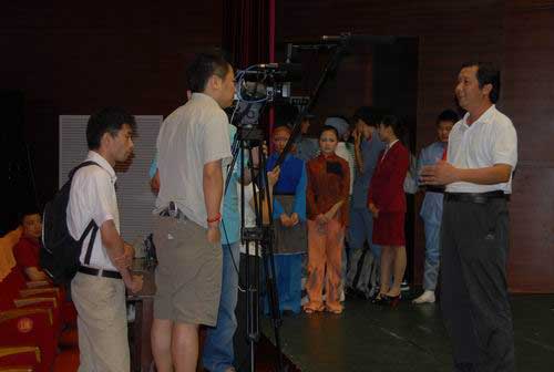演出结束时,张泰城会见了NHK电视新闻导演、记者一行,向他们介绍了节目的创编和演出等情况。NHK记者表示,他们虽不懂中文,但理解节目的内容与主题,认为节目很有感染力,大学生的表演水平也很不错。NHK记者还就节目创编的目的、意义,演出的感受、体会等,现场采访了主创人员彭一敏,学生演员朱云芳、王宁。