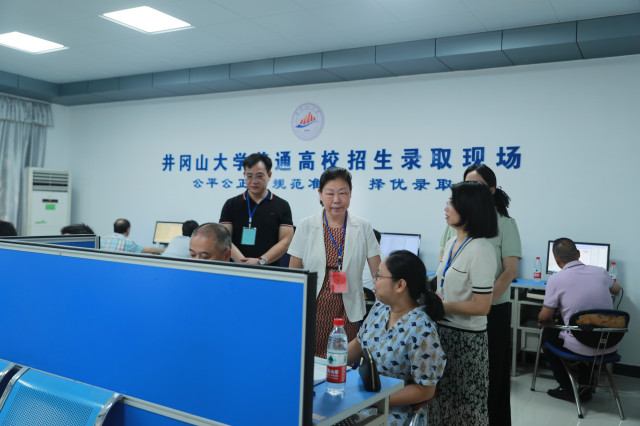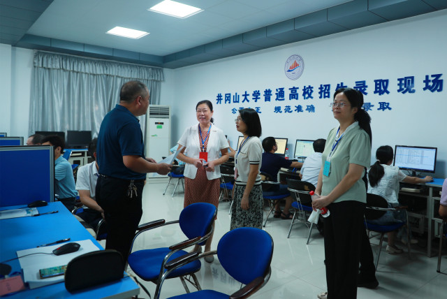 7月27日上午,在我校2022年普通高校招生录取工作期间,校党委书记胡春晓,党委副书记、校长曾建平,校党委常委、校纪委书记史胜平,校党委常委、副校长冷明一行到招生录取现场,对招生录取工作进行了巡视指导,看望慰问招生录取工作人员。