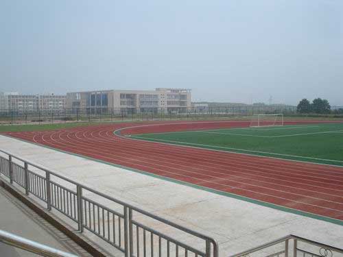 该塑胶田径运动场位于校区东部,场地面积16282平方米,工程内容包括塑胶跑道、人造草足球场、主席台和看台四个部分,看台座位2200座,概算投资约975万元。工程已通过国家田协检测,获得了合格证书。
