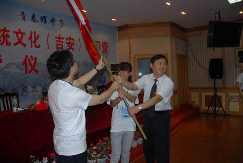 最后,阎钢军为两岸大学生中华传统文化(吉安)研习营授旗。