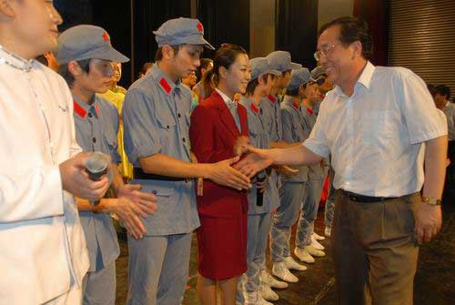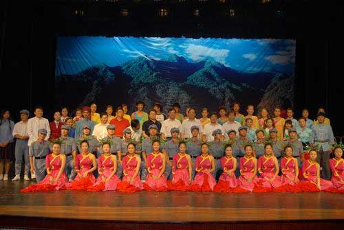 教学演出结束后,周福成等走上舞台,接见演员,祝贺演出成功。