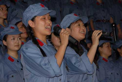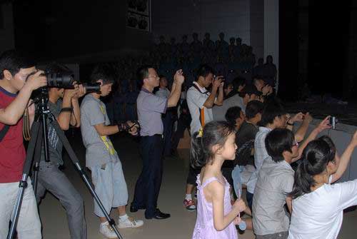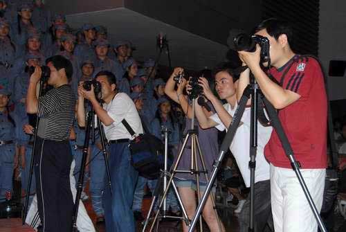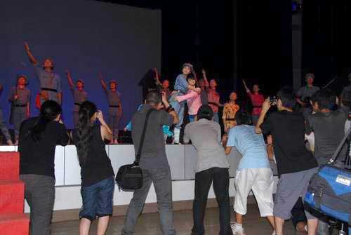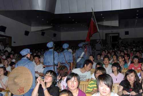 几百名演员在台上深情表演,而台下相关专业的1000多名大学生一边认真欣赏精彩演出、接受革命传统教育,一边在现场进行构思和创作。他们要用手中的相机定格精彩感人的瞬间,要用巧思妙想和生花妙笔抒写爱国的情怀,要用笔墨丹青绘就井冈山斗争的辉煌的画卷。