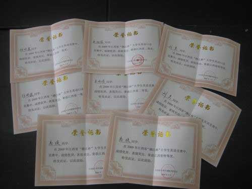 同样可喜的是,非英语专业本科组高婕同学和专科组陈晓霞同学还因分别获得全国大学生英语竞赛(江西赛区)综合成绩特等奖(录取率为全省初赛参赛人数的千分之一),被评为2009年全国大学生英语竞赛夏令营成员。
