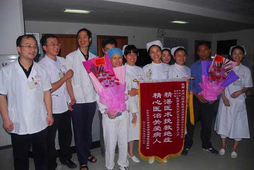 5月12日,一名被确诊为“急性粒细胞白血病M2a”的患者在附属医院成功接受了外周血自体干细胞移植手术后,在医护人员陪同下走出了层流仓,标志着我市首例自体干细胞移植手术取得成功。在外周血常规检测及骨髓细胞学图片检查正常的情况下,他可以与正常人一样生活与工作。副校长王伴青以及附属医院领导到病房探望患者。血液内科医护人员向病人献上鲜花,病人家属向科室献上“精湛医术挽救绝症,精心医治关爱病人”的锦旗。