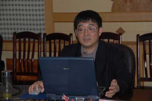 张泰城向二月河介绍了学校的基本情况,介绍了学校的学生管理工作、科研工作、服务社会、学校管理以及办学特色等方面的情况。