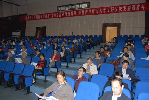 史蓉蓉说,井冈山大学党委始终坚持以邓小平理论和“三个代表”重要思想为指导,全面贯彻落实科学发展观,认真贯彻党的教育方针,始终坚持社会主义办学方向和“党要管党”、“从严治党”的方针,大力加强党的建设和思想政治工作,始终坚持发挥学校党委的领导核心作用,与时俱进、解放思想,把推动学校上规模上水平作为第一要务,始终坚持维护班子团结、改进班子作风作为根本性、关键性的举措,为学校的改革、发展、稳定提供了坚强的政治保证;始终坚持群众路线,全心全意依靠教职工办学,凝聚和调动了各方面的积极因素。学校党委和行政紧紧围绕办人民满意大学的要求,坚持以井冈山精神办学育人,以培养一流名师和一流学生、为社会作出新贡献为己任,学校规模稳步扩大,学科建设取得重要进展,科研成果明显增多,办学层次不断提升,学校的影响日益扩大。