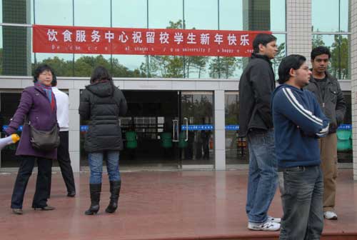 今年寒假,学校有70多名大学生因各种原因没有回家,他们一边学习一边勤工俭学,生活充实而愉快;228名外国留学生则根据教学计划一直坚持上课。