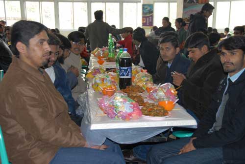 1月24日,受校党委书记万继抗、校长张泰城委托,副校长康泰、罗学渭、王伴青,以及有关部门负责人,与留校的外籍教师、中外学生共300多人一起,共同欢度2009年新春佳节。