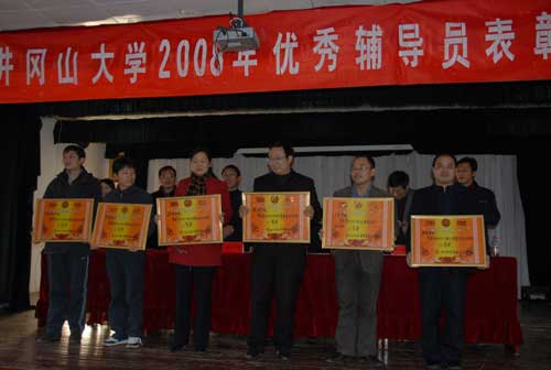 12月31日下午,学校举行2008年度优秀辅导员表彰大会。党委副书记金桂英、副校长王伴青出席,并为优秀辅导员(班主任)和学生管理工作先进个人颁奖。学工处长钟风健主持。