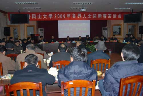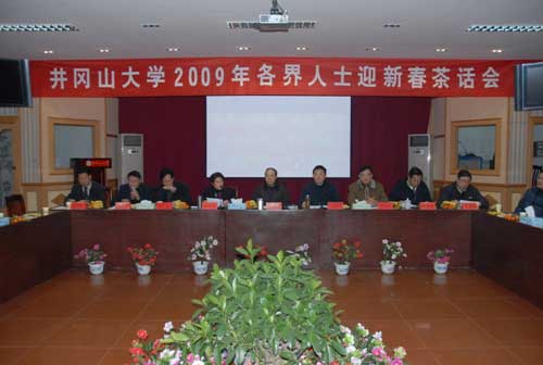1月8日下午,学校召开各界人士迎春茶话会,校党委书记万继抗发表了热情洋溢的讲话,校长张泰城通报了2008年学校工作情况,并展望了2009年的工作。党委副书记金桂英主持,在校的领导桂国庆、康泰、郭名根、王伴青、肖蕴诗出席会议,原井冈山学院党委书记郭永勤出席会议。在校的各民主党派、统战社团负责人,市、区政协委员(党外),无党派人士,侨眷代表,教师代表和后勤职工代表,离退休老同志代表,以及党、政机关有关部门主要负责人参加会议。