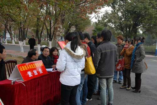 为进一步强化我校的后勤服务意识,促进后勤服务质量的提高,12月24日上午,校纪委监察室,后勤管理处等有关部门与后勤集团共同在行政大楼前等设点发放后勤服务满意度测评问卷,拉开了我校2008年度后勤服务测评活动的序幕。校长张泰城、副校长罗学渭到现场指导。