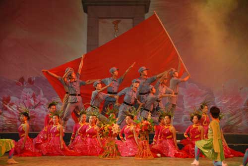 11月29日晚,由中国井冈山干部学院、同济大学和我校联合创编,我校大学生演出的音乐舞蹈史诗《井冈山》举行了第43场演出,取得圆满成功。参加中国红色资源教育教学理论研讨会的专家学者在校长张泰城、副校长罗学渭等陪同下,兴致勃勃地观看演出,全校近1500名师生观看。近百名学生的精彩表演,近300名学生组成的合唱队气势恢弘的演唱,震撼了现场的每一个观众,剧场不时响起雷鸣般的掌声。