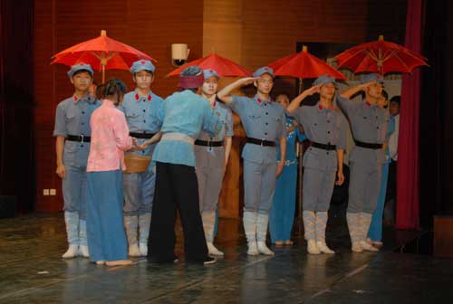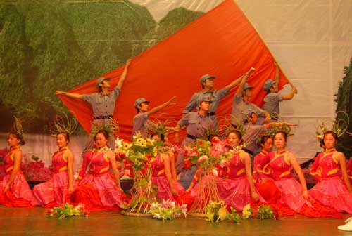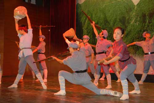 11月21日晚,由中国井冈山干部学院、同济大学和我校联合创编,我校大学生演出的音乐舞蹈史诗《井冈山》,在中国井冈山干部学院成功举行了第20场教学演出,得到了全体观众的充分肯定,取得圆满成功。院、校领导张泰城、张友南等到场观看。来自全国18个省(市、区)的“学习贯彻党的十七届三中全会精神”县委书记培训班(第4期)学员,第1期县长培训班学员,以及中组部、中央政法委、农业部、住房和城乡建设部、国土资源部等有关部委工作人员,中国井冈山干部学院工作人员等共260多人到场观看。