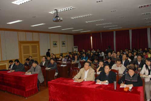 11月19日下午,厦门大学教授、博士生导师潘懋元先生应邀在我校举办了学术报告会。在校的领导金桂英、罗学渭、萧蕴诗等出席,副校长康泰主持。机关副处级以上干部,办公室、教务处、学位学科办、发展规划研究室、高教所、科研处、学工处全体工作人员,教育学院全体教师等到会听取报告。