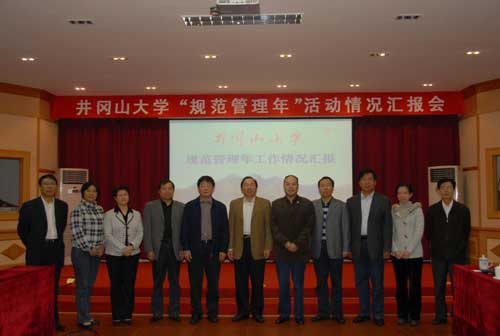 张泰城汇报了学校的基本情况,重点汇报了学校管理规范年的主要做法以及管理创新与成效等。张泰城说,学校高度重视“规范管理年”活动工作,为了加强对活动的组织领导,成立了“规范管理年”活动领导小组,狠抓各项工作落实。学校全面贯彻落实科学发展观,坚持社会主义办学方向,紧紧围绕办特色鲜明、办人民满意大学的要求,遵循高教规律,创新办学理念,坚持科学管理、和谐管理、特色管理,促进学校各项事业科学发展、和谐发展、特色发展。在科学管理方面,学校梳理、修订、整合了一系列有关教学、科研和学生工作等方面的管理制度,制定创新了综合管理、教学科研管理和学生管理三个方面的《管理工作规程》。尤其是制定了工作指南、工作流程及承诺制、问责制等,并实行了管理人员每日填写工作日志的制度,保证学校管理高效有序地运行。学校采取项目管理与资助的办法,开展管理工作课题研究,努力培养造就研究型管理队伍,提高管理干部的创造力和执行力。学校遵循学术规律,不断加强创新团队建设,实施了学科带头人制度和学术带头人制度。以课程群和涉及面宽的公共课建设为基础,组成教学创新团队,实行“教学带头人”制度。在和谐管理方面,学校妥善处理好合并之初三校之间的关系,妥善处理好教学科研人员与行政管理人员之间的关系,妥善处理好引进人才与原有人才之间的关系。学校还建立和完善了对贫困学生的“减、免、补、助、贷、奖”的资助体系,学校严格收费管理,规范招生行为,严格财务管理,加强后勤管理,高度重视安全稳定工作。在特色管理方面,学校长期坚持以井冈山精神办学育人,开展革除陋习活动,提高师生综合素质,建立本科生导师制。