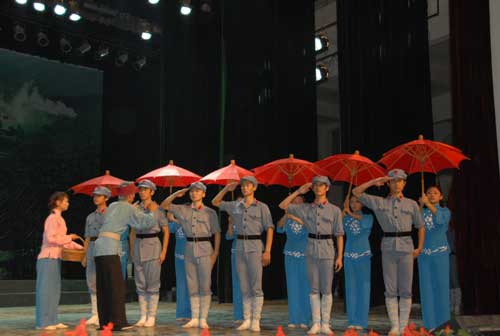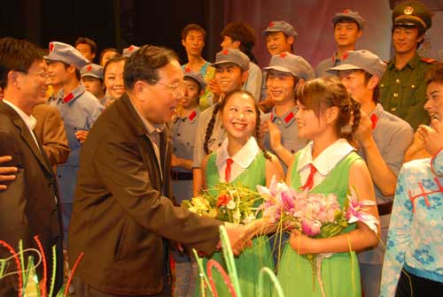 10月28日晚,由中国井冈山干部学院、同济大学和我校联合创编,我校大学生演出的音乐舞蹈史诗《井冈山》,为五十周年校庆献演取得圆满成功。我校兼职教授、原中国人民解放军总参谋部兵种部政委田永清少将,中国人民解放军总参谋部兵种部程继宏大校,中国人民解放军海军某部政委杨小平大校,在副校长罗学渭的陪同下观看了演出。观看演出的还有参加校庆庆典的部分校友,学校有关部门负责人以及2008级大学生等共1500多人。