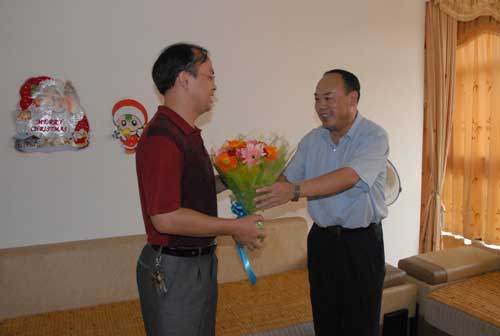 9月10日,在校的领导万继抗、张泰城、桂国庆、康泰、郭名根、王伴青,在有关部门负责人陪同下,代表学校分别走访优秀教师代表、老教师代表、新进教师代表和受到全省表彰教师代表,祝他们教师节愉快。
