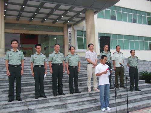 8月4日6点30分,青原区人民武装部举行了欢送我校25名大学生光荣参加中国人民解放军士官仪式。吉安军分区参谋长程小云讲话,他勉励我校25名大学生入伍后要发扬井冈山精神,为井冈山人民争光,为井冈山大学争光。参加欢送会的领导有:青原区人民武装部部长袁忠、青原区副区长王志刚、井冈山大学人民武装部部长廖万民等。青原区委常委、武装部政委刘永卿主持欢送会。(保卫处)