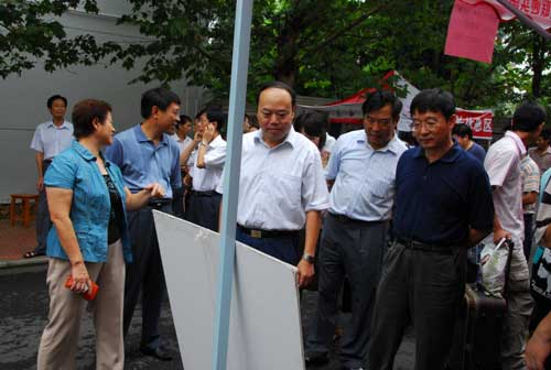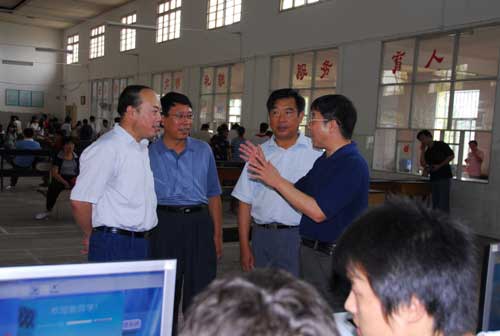 9月4日上午,在校领导万继抗、张泰城、金桂英、康泰、郭名根、罗学渭、王伴青,在有关部门负责人陪同下,到新生报到点看望08级新生及家长,慰问参与接待新生的全体工作人员。