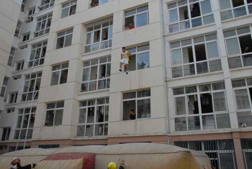 6月22日下午,我校和青原区消防大队在学生宿舍31栋联合举行消防灭火疏散演习。副校长罗学渭观摩了演习,副校长王伴青讲话,青原区消防大队大队长吕文、学校各部门负责人也观摩了演习,数理学院学生近200人参加了演习。