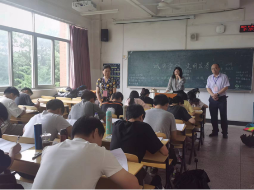 2021-2022学年度第二学期期末考试于6月13日顺利开考,校党委书记胡春晓,党委副书记、校长曾建平等领导带领教务处和各学院负责人深入各考场检查指导期末考试工作。