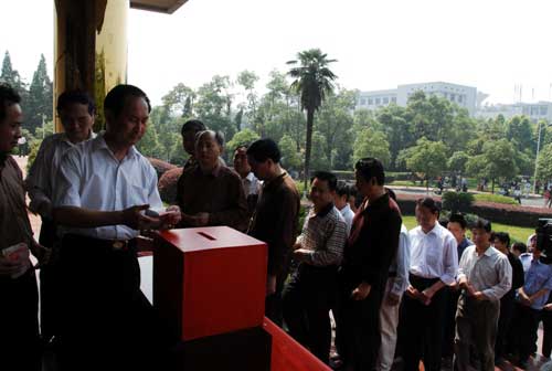 连日来,我校各级党团组织号召全校2万名师生积极伸出援助之手,为四川灾区捐款献爱心。5月16日,学校组织的募捐活动达到高潮,在校的领导万继抗、张泰城、金桂英、桂国庆、郭名根、罗学渭、王伴青、肖蕴诗等带头,500多名师生积极参与。在捐款现场,师生在为灾区遇难者默哀一分钟后,纷纷慷慨解囊,短短半个小时,捐款总金额就超过10万元。这也是我校筹集到的第一笔捐款。目前,全校性的捐款活动还在继续。