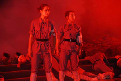 晚上7时30分,演出正式开始。圣洁、神圣、庄严、高亢而悠扬的开场音乐,一下子就抓住了观众的心,把大家从平和的现实生活拉回到峥嵘的井冈山斗争岁月。《黄洋界大捷》、《小井英烈》,一个个真实而悲壮的故事,被演员演绎得栩栩如生;《三湾来了毛委员》、《八角楼的灯光》,时而热烈时而宁静的舞台气氛,使观众产生了强烈的共鸣;《毛委员和我们在一起》、《十送红军》,台上台下互动,演员、观众融为一体,现场气氛感人至深;《成长》艺术地再现了红军战士在战争中成长的过程,让观众受到深深的震撼;而大气磅礴的《尾声》,更是让观众陶醉在革命胜利的喜悦之中。90分钟的演出,现场掌声不断。观众在欣赏到了优美的音乐、舞蹈的同时,也受到了一次井冈山精神的洗礼。