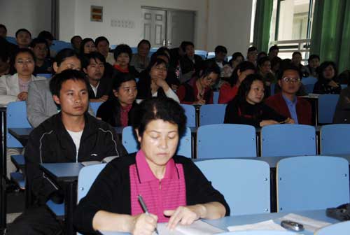 4月18日下午,学校举行第二期教代会代表培训班,江西省教育工会常务副主席、高级讲师万学华应邀来校为校第一届教代会全体代表作题为《教代会制度建设》的专题报告,党委副书记金桂英到会听取报告。