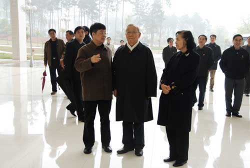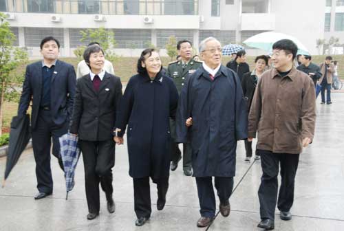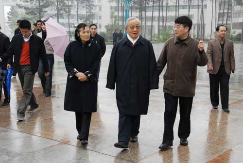 4月4日上午,原中共中央政治局委员、中央军委副主席、国务委员兼国防部长迟浩田上将,在省市有关领导陪同下,来校视察。在校的领导张泰城、金桂英、罗学渭、肖蕴诗等陪同。