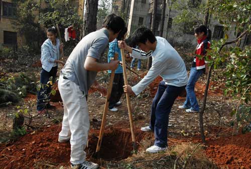 3月12日是植树节。当天上午,数理学院几百名大学生挥汗如雨,在校园内山坡上挖了460多个树洞,再次掀起了今年学校植树造林的热潮。