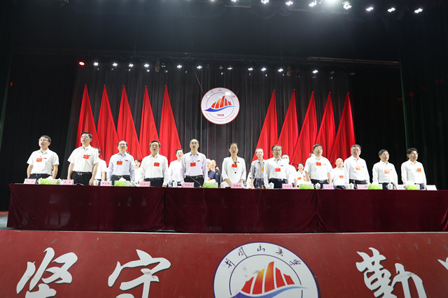 大会隆重开幕,主席团成员和教代会代表共同唱国歌