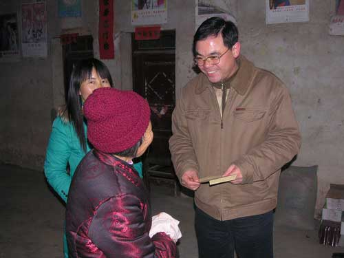 1月23日,校党委委员、副校长桂国庆受学校党委和行政的委托,在党委宣传部主要负责人的陪同下,到学校新农村建设挂点村安福县寮塘乡冻边村走访慰问老党员和困难群众,并送去慰问金。