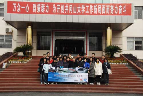 元月4日上午,由香港爱国社团“学友社大专部”组成的“江西革命历史圣地文化交流团”一行25人来我校参观交流,国际合作与交流处李雄处长陪同参观了校园和井冈山精神展览馆,爱国社团通过这次参观,了解了井冈山精神并深受爱国主义教育。之后,参观团向我校赠送了纪念旗和纪念册。(国际合作与交流处)
