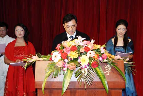 桂国庆代表学校党政和全校师生员工向出席典礼的各位领导、老师和同学表示热烈欢迎,向获奖单位和同学表示热烈祝贺。他说,颁奖典礼在我校举行,是对我校极大的关心和鼓舞。我校将进一步学习贯彻党的十七大精神,弘扬井冈山精神,把艺术类专业办出特色、办出水平,培养出更好更多的广告艺术类人才,为我省经济建设和社会发展提供有力的人才支持和智力支撑。