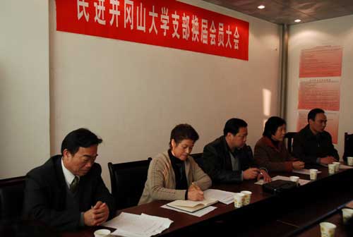 金桂英首先代表学校党委对大会的召开表示祝贺,对当选的支部委员表示祝贺。她说,民主党派人士是学校教书育人、科技创新的生力军,是民主治校、促进学校发展的智囊团,是党委联系群众及教职工的桥梁纽带,是参政议政的主力军,是培养输送党外干部的源泉,他们为学校的改革发展和稳定工作作了很多工作。她希望民进井冈山大学支部全体成员进一步加强学习,通过学习,坚定党的政策方针,希望民进井冈山大学支部成员认真学习党的十七大精神,用十七大精神来指导实际工作,希望支部成员牢牢把握发展的根本方针,要努力为吉安市的经济社会发展和学校的建设与发展作出自己的贡献。希望民进井冈山大学支部进一步加强自身建设在今后的工作围绕服务吉安经济社会发展,围绕学校党委提出的办一所人民满意的大学而努力奋斗。