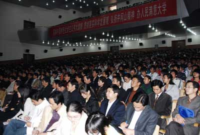 沈谦芳的宣讲报告受到师生的热烈欢迎,会场上掌声不断。报告结束后,沈谦芳还热情回答了政法学院07级学生田龙、吴先强,信息科学与传媒学院05级学生石磊的提问。