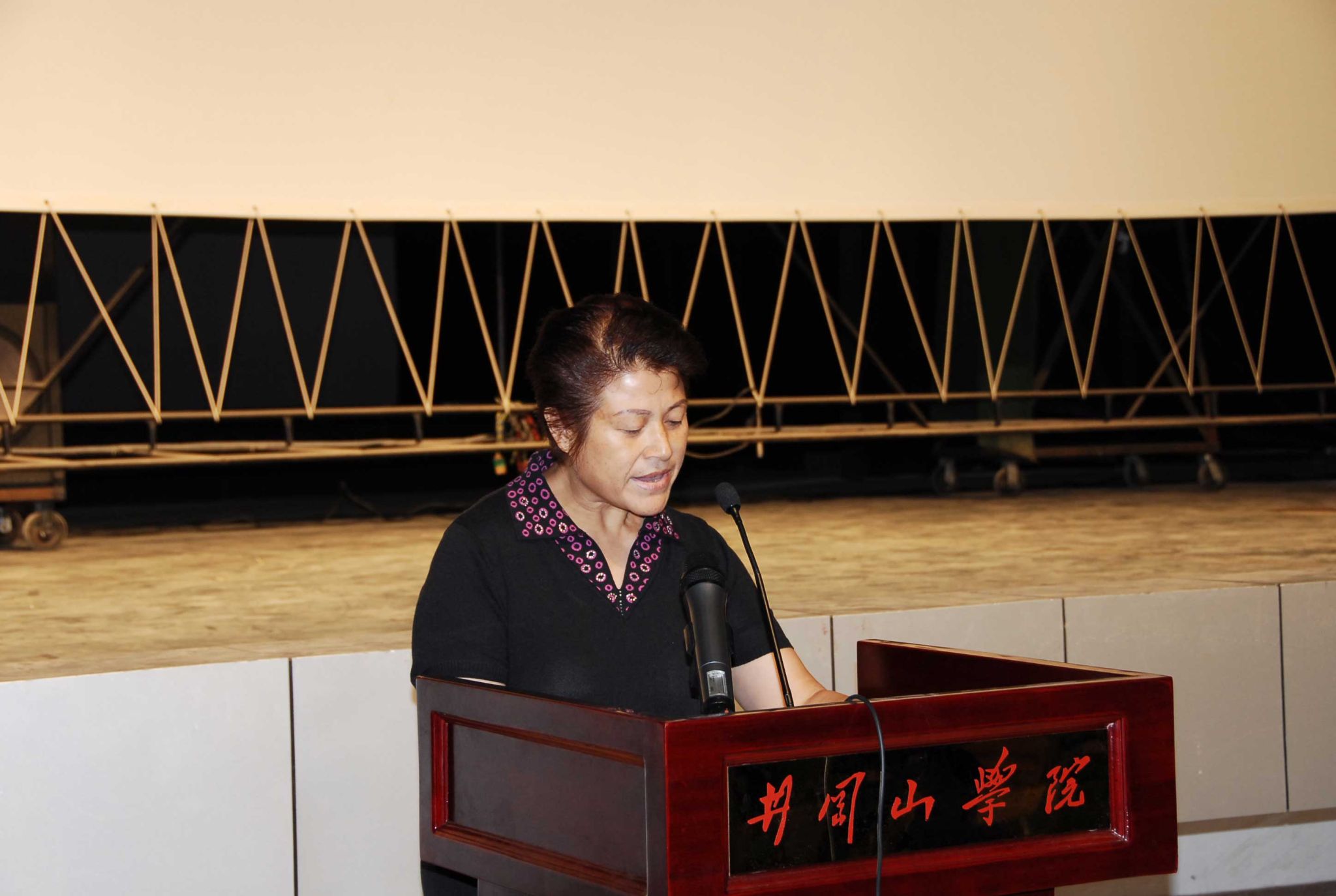 金桂英在致辞中,首先代表学校党政向离退休老同志致以节日的祝贺和亲切的慰问。她向老同志介绍了学校的发展和建设情况,同时指出,学校党政非常重视老干部工作,把离退休人员工作作为学校发展的一项重要工作。她希望离退休老同志继续关心学校的事业发展,热心参与学校的各项工作,在党的十七大精神指引下,为学校的发展发挥余热,为建设井冈山大学做出新的贡献。